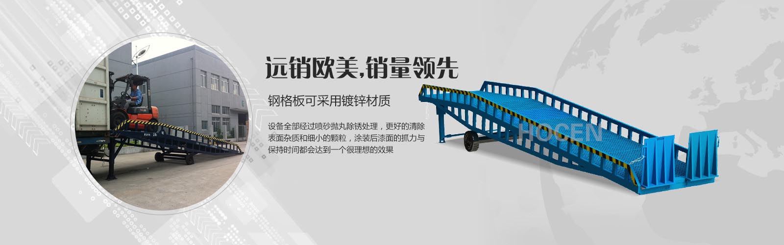 公司長期致力于鋁合金系列升降平臺、錳鋼系列液壓升降平臺和各種登車橋的研發(fā)生產(chǎn)。經(jīng)過不懈的研究探索,積累了豐富的設(shè)計、制造經(jīng)驗,其中我們也不斷學習國外先進技術(shù)和設(shè)計方案,讓產(chǎn)品在工藝上和外觀上更精益求精。公司擁有從原材料處理、加工、噴涂的成套制造和檢測設(shè)備,嚴格的生產(chǎn)管理、豐富的經(jīng)驗.....