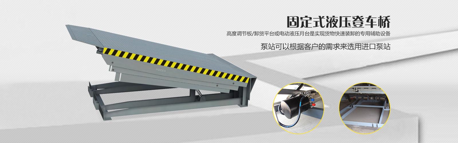 固定式液壓登車橋是實現(xiàn)貨物快速裝卸的專用輔助設(shè)備,安裝在月臺、建筑物上,搭接于貨車車廂,調(diào)節(jié)月臺、建筑物地面與車廂之間的高度差